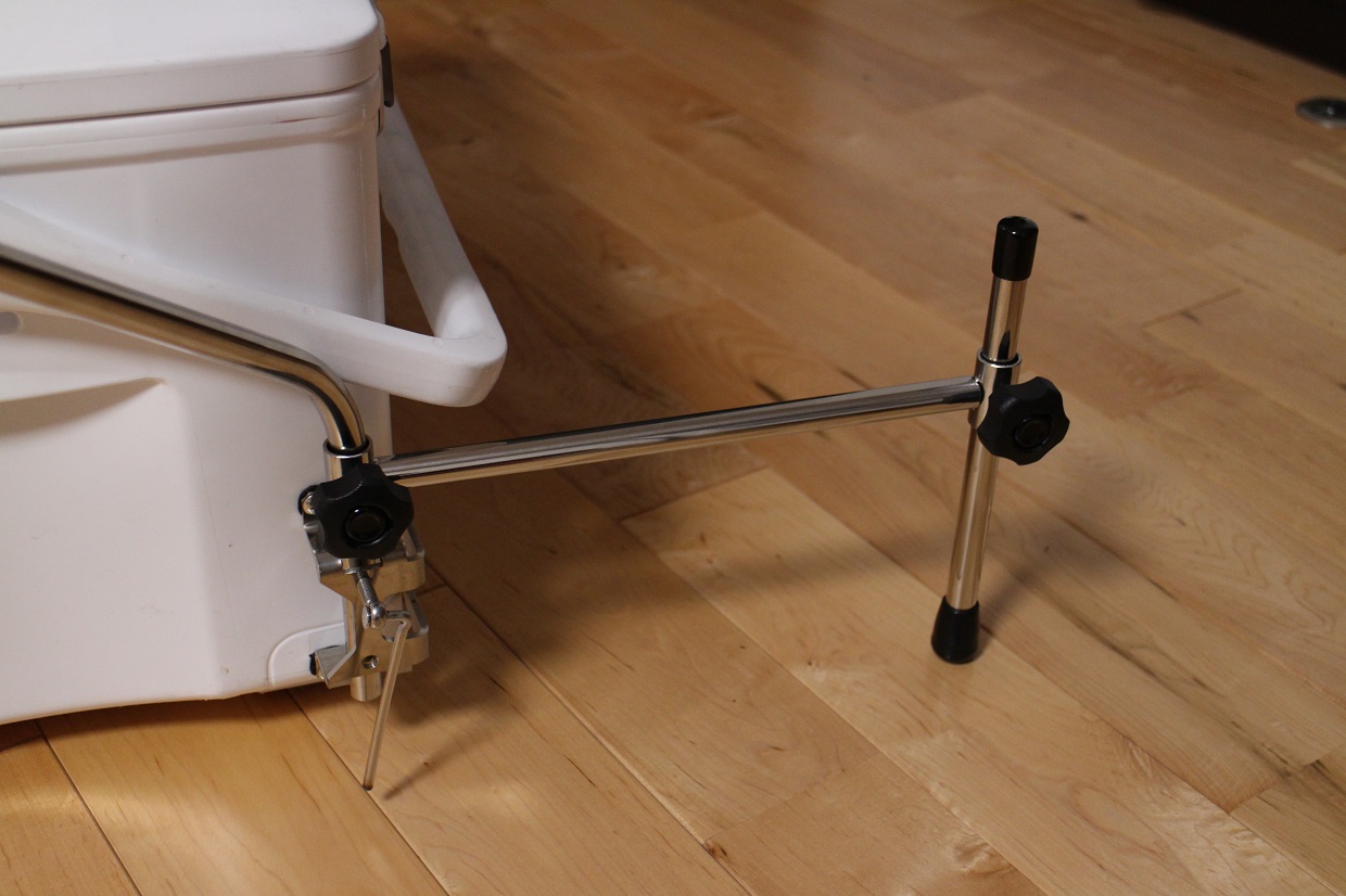 クーラーボックスの転倒をよりスマートかつコンパクトな部品で抑えることを目的に製作しました、高さ変更が容易です。