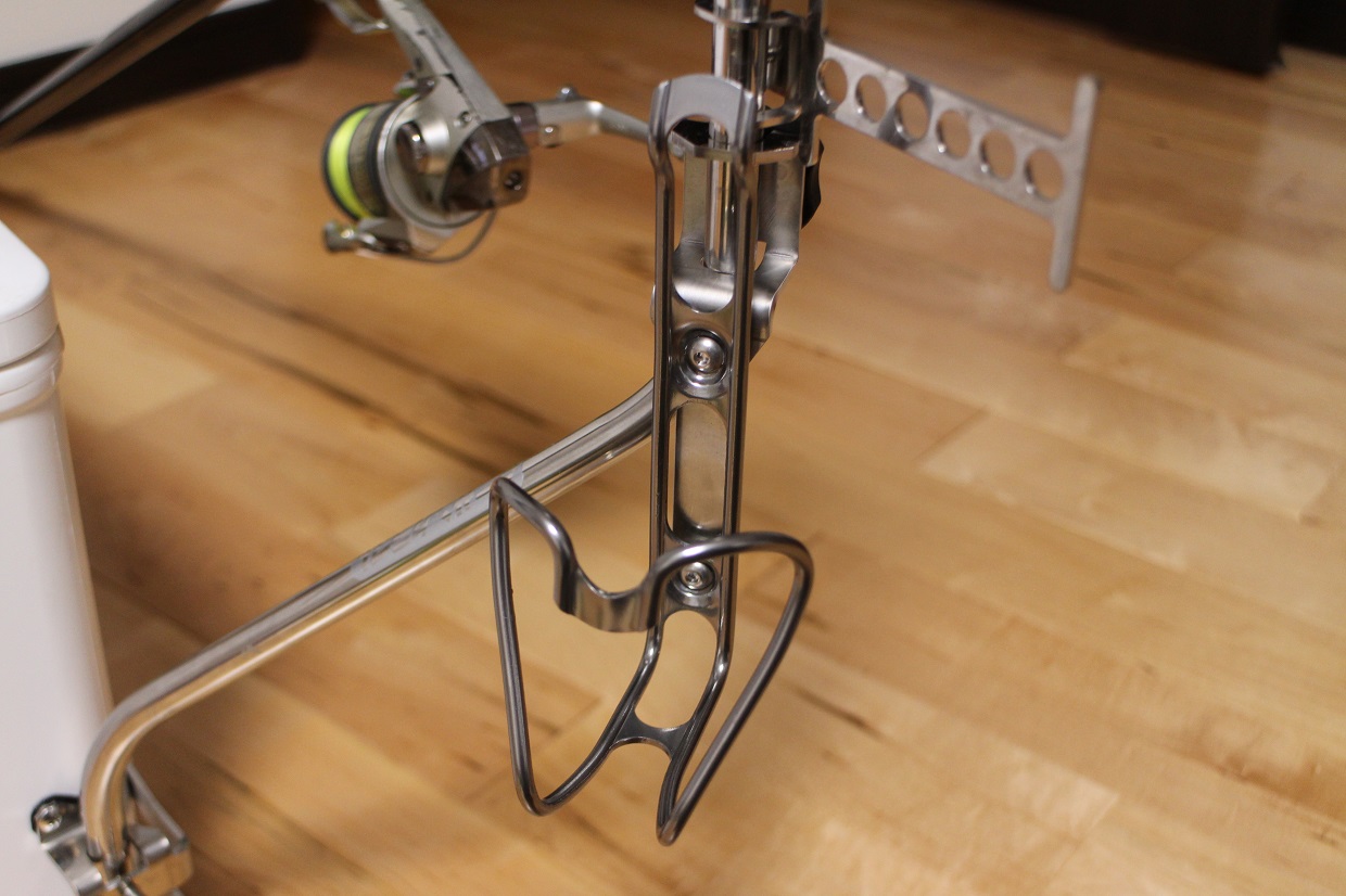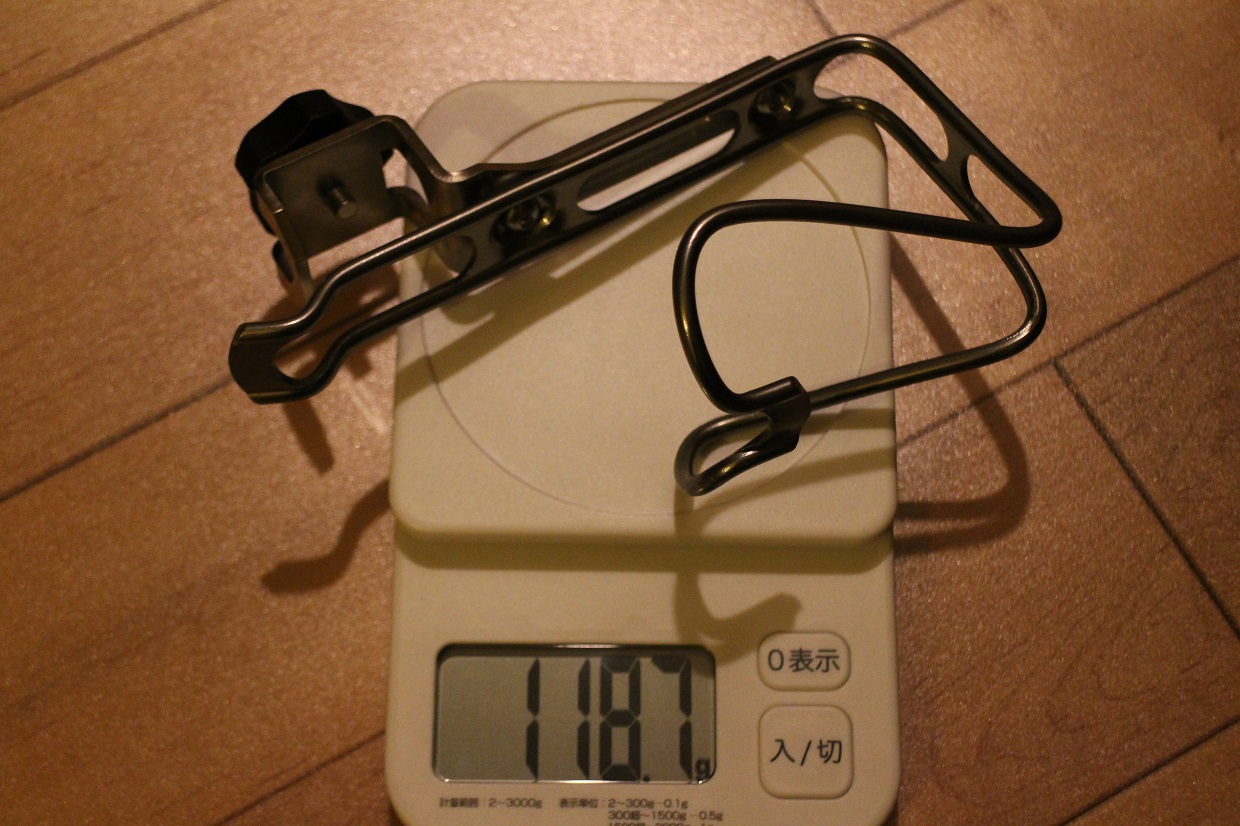 自転車用のアルミ製ドリンクホルダーが取り付けられています。