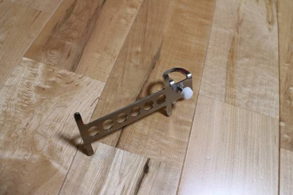 ステンレスのレーザーカットで作り大幅な肉抜きにより重量は約35gまで絞りました、