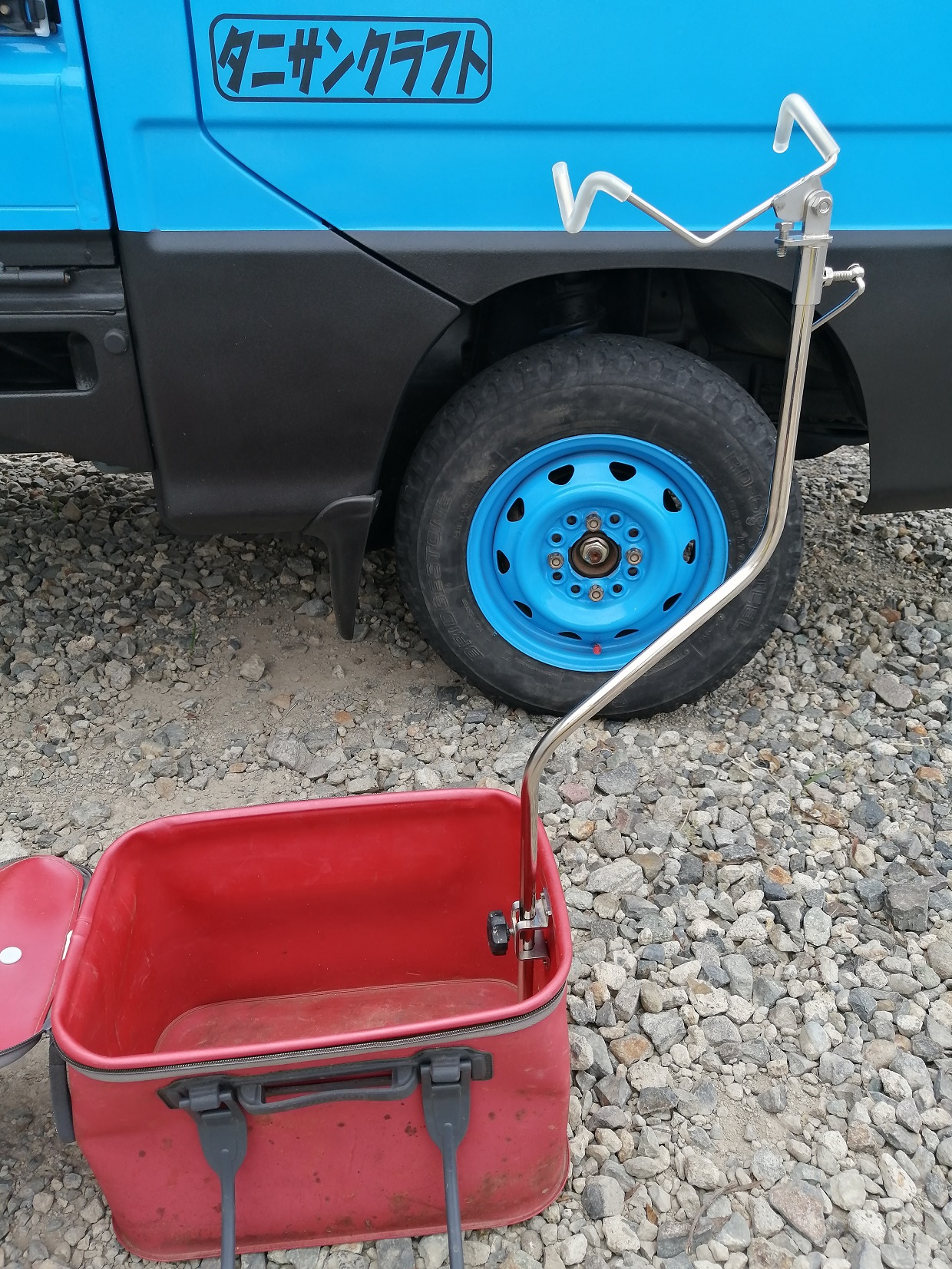 セミハードバッカンにクランクパイプと竿受けを取り付けると不安定さが激減します。